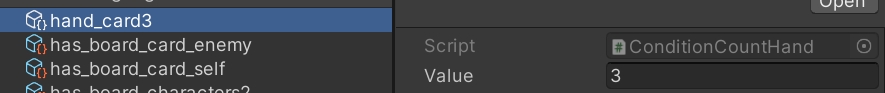 Now lets say we want the player to only use this ability if they have at least 3 cards in hand. We can create a condition for it. Create a new script called ConditionHandCount.cs